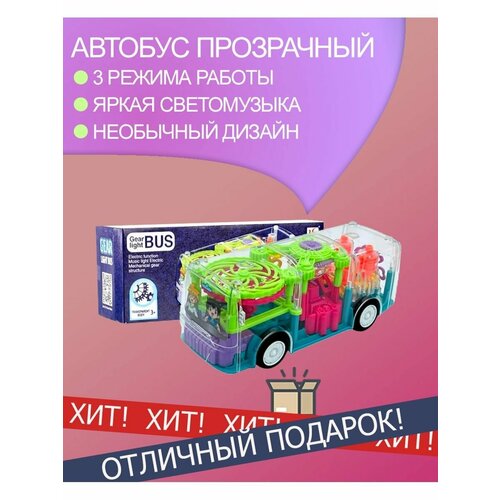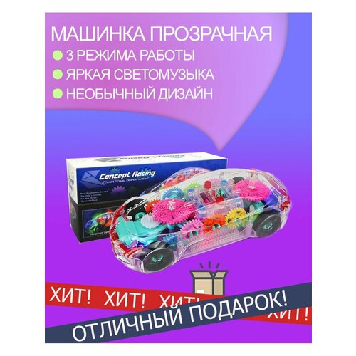 Машинка прозрачная светящаяся с шестерёнками музыкой