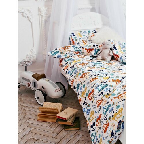 Постельное белье комплект 1,5-спальное Машинки / полуторка / односпальное/ дошкольное / наволочка 50х70-1 шт. / TM TEXTILE / 100% хлопок / фланель