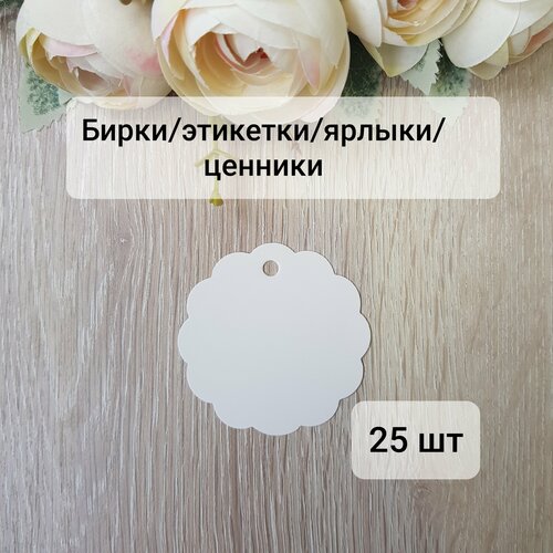 Бирки, этикетки, ценники в виде цветка белого цвета, 25 штук