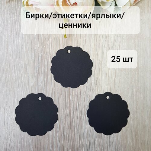 Бирки, этикетки, ценники в виде цветка черного цвета, 25 штук
