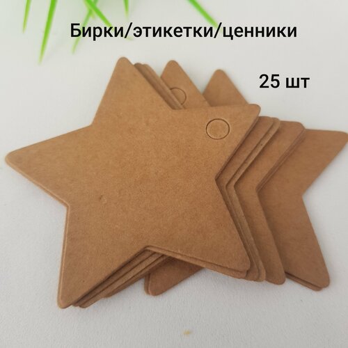 Бирки, этикетки, ценники в виде звезды крафт, 25 штук