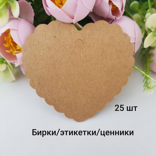 Бирки, этикетки, ценники в виде сердца крафт, 25 штук