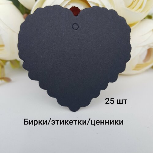 Бирки, этикетки, ценники в виде сердца черного цвета, 25 штук