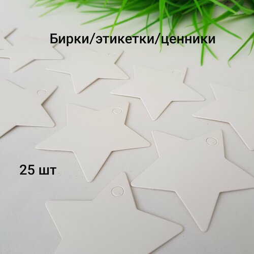 Бирки, этикетки, ценники в виде звезды белого цвета, 25 штук