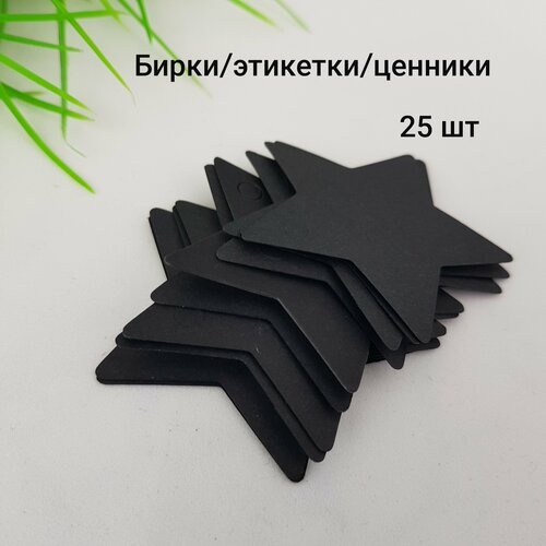 Бирки, этикетки, ценники в виде звезды черного цвета, 25 штук