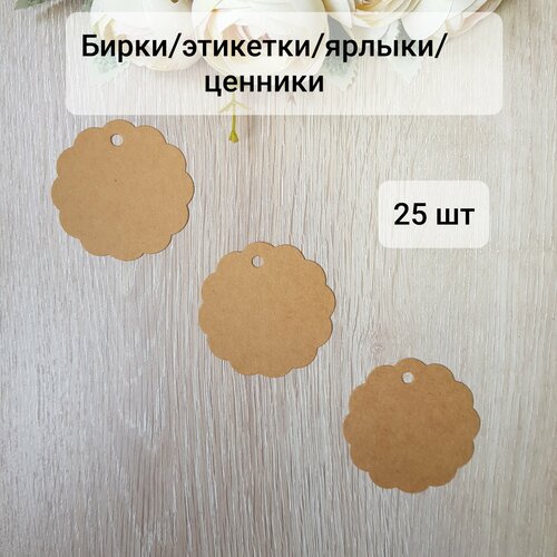 Бирки, этикетки, ценники в виде цветка крафт, 25 штук