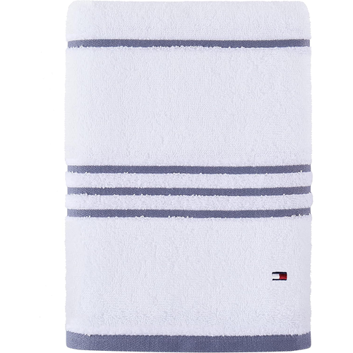 Полотенце Tommy Hilfiger белое с серыми полосками банное хлопковое