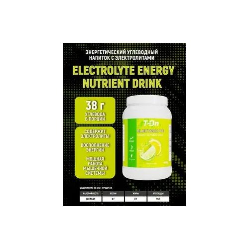 Энергетический напиток T-On с электролитами и углеводами Изотоник вкус лимона и лайма, 900 грамм