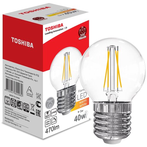 Лампа светодиодная TOSHIBA Golf G45 40W 3000K CRI 80 ND E27 (5W 470 lm 170°)