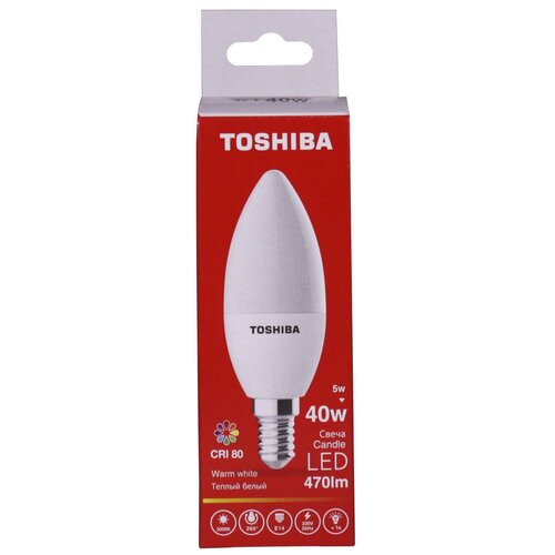 Лампа светодиодная TOSHIBA Candle C35 40W 3000K CRI 80 ND E14 (5W 470 lm 260°)