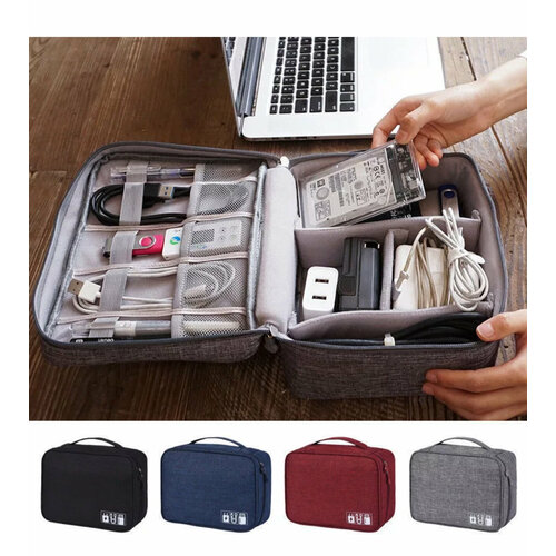 Органайзер для проводов и аксессуаров Серый GR/ Органайзер для кабелей / Сумка для проводов