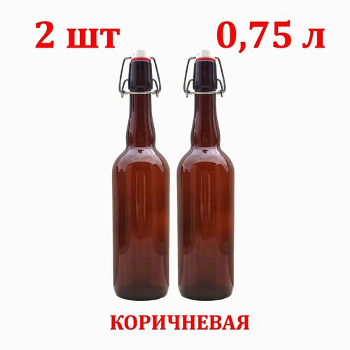 Стеклянная коричневая бутылка с бугельной пробкой 0,75 литра 2 штуки