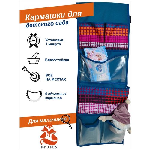 Кармашек органайзер на шкафчик в детский садик для мальчика 88*26 см К100007 Три Лисы
