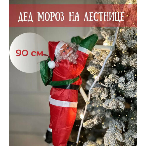 Дед мороз на лестнице, новогоднее украшение для дома / 90 см / TS - Store