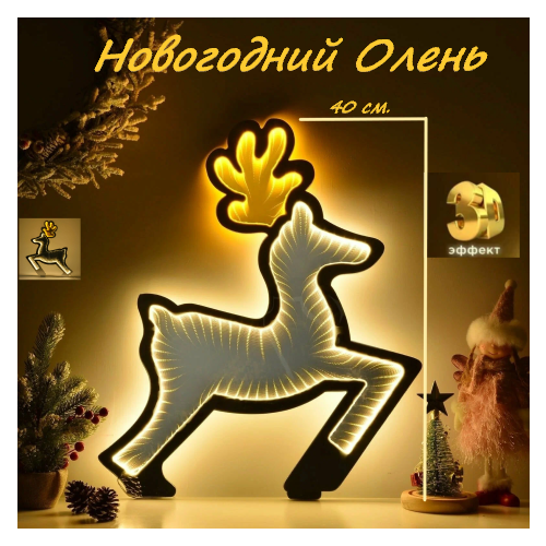 Новогодний Олень 3D с эффектом глубины 40см