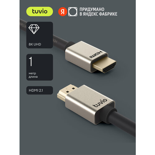 Кабель HDMI Tuvio, версия HDMI 2.1, 1 метр, темно-серый, позолоченные контакты