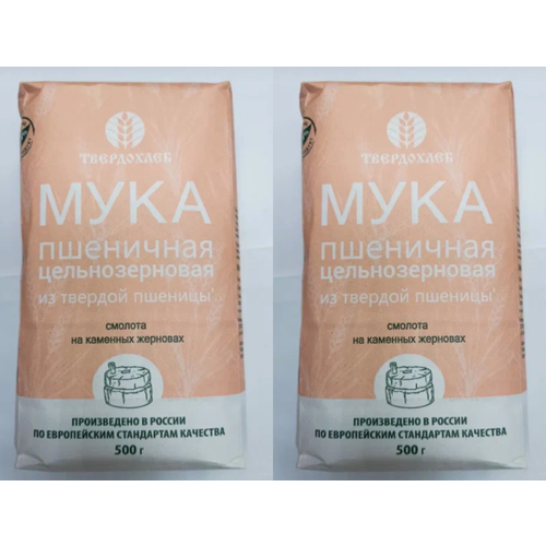 Мука Твердохлеб пшеничная, из твердой пшеницы, цельнозерновая, 500 гр, 2 шт
