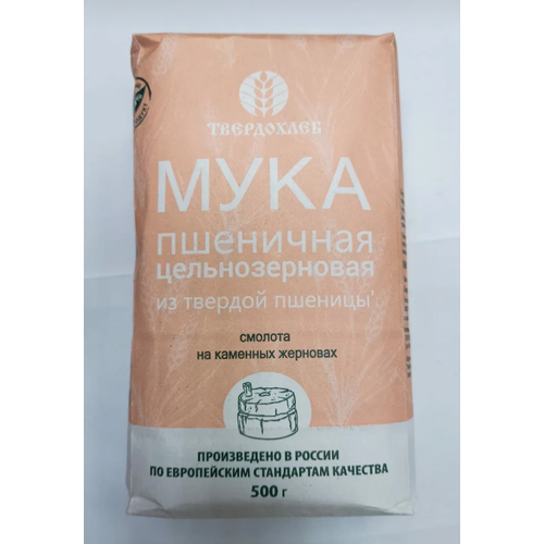 Мука Твердохлеб пшеничная, из твердой пшеницы, цельнозерновая, 500 гр