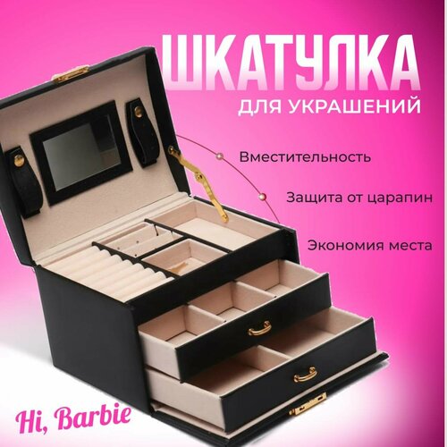 Большая шкатулка для украшений сережек, колец. Сундук для бижутерии и драгоценностей . Черный