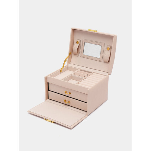 Большая шкатулка для украшений сережек, колец. Сундук для бижутерии и драгоценностей. Пудровый