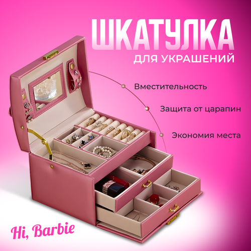 Большая шкатулка для украшений сережек, колец. Сундук для бижутерии и драгоценностей . Розовый