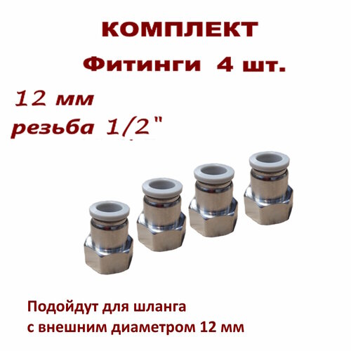 Фитинг (штуцер) быстросъём 12мм, резьба 1/2 / комплект 4 штуки / быстросъёмная гайка никель мама
