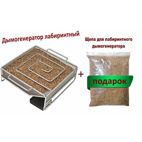 Дымогенератор лабиринтный квадратный (пассивный) для копчения + щепа в подарок