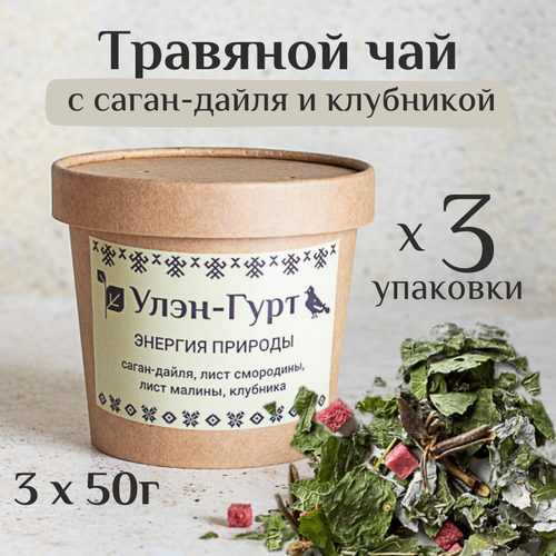 Травяной чай Улэн-Гурт "Энергия природы" с саган-дайля, ягодами клубники, листьями малины и смородины, без кофеина, 3 шт. х 40 гр.