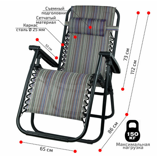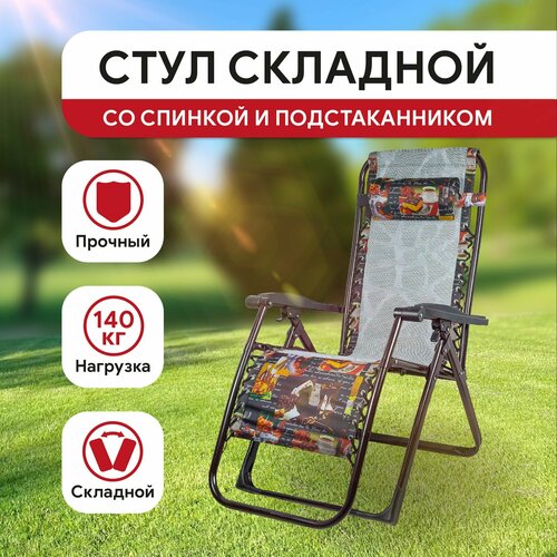Кресло-шезлонг складное для дачи, пляжа, туризма: комфорт стула и функциональность раскладушки, / М-0053