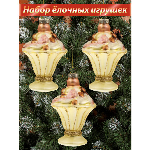 Стеклянные новогодние елочные игрушки "UltraMarin" 611-LN Десерт 3 шт.