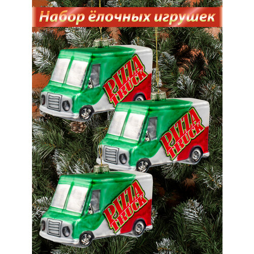 Стеклянные новогодние елочные игрушки "UltraMarin" 616-LN Фургончик пицца 3 шт.