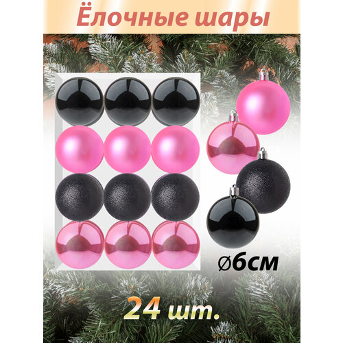 Набор новогодних игрушек "UltraMarin" 162-NB Контраст Елочные шары - 24 шт розовый/черный