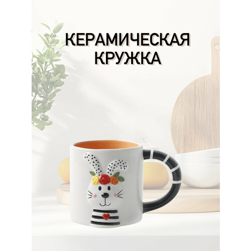 Кружка керамическая Кружка Зайка 450 мл в виде животного белый цвет