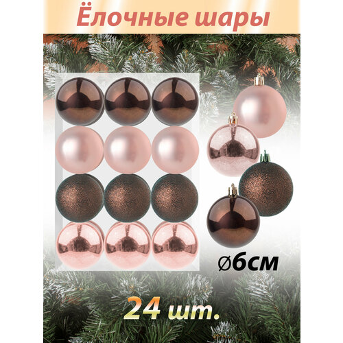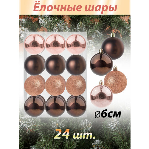 Набор новогодних игрушек "UltraMarin" 148-NB Латте Елочные шары - 24 шт коричневый/шампань