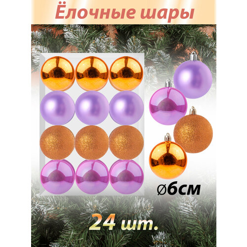 Набор новогодних игрушек "UltraMarin" 152-NB Арлекин Елочные шары - 24 шт сиреневый/оранжевый