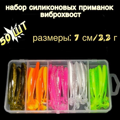 Набор силиконовых приманок для рыбалки 70 мм /50 шт