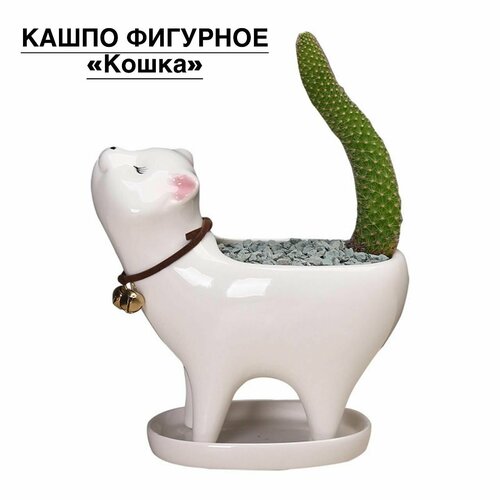 Кашпо фигурное "Кошка" белое 12,7*13,2*7 см