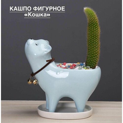Кашпо фигурное керамическое"Кошка" голубое 12,7*13,2*7 см