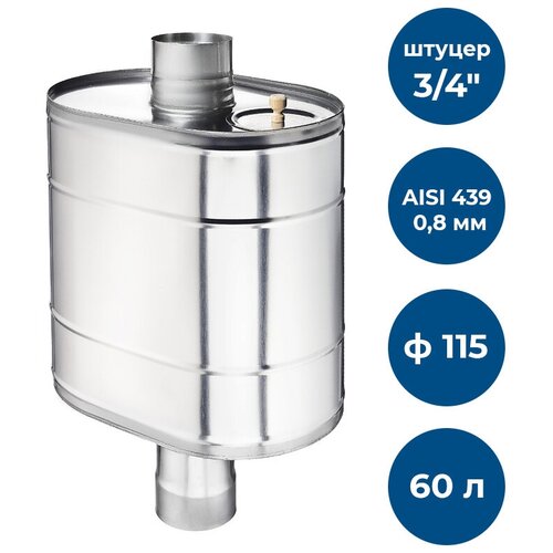 Бак на трубе для печи, 60л, ф 115, AISI 439/0,8мм, (штуцер 3/4")