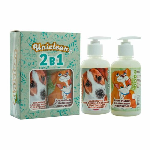 UNICLEAN Набор шампунь для джек-расселов с маточным молочком и крем-мыло с маточным молочком