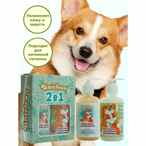 UNICLEAN Набор шампунь для короткой шерсти с маточным молочком и крем-мыло для лап с прополисом