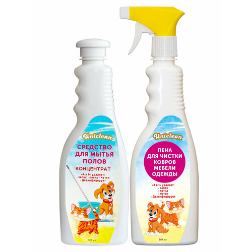 Промо набор Uniclean Пена для чистки ковров мебели одежды 500 мл и Средство для мытья полов концентрат 500 мл 4025