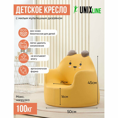 Детское кресло UNIX Kids Bear "S" Yellow Мишка, съемный чехол, мебель для детской комнаты, мягкое кресло для детей, размер 50х55х45 см, до 100 кг