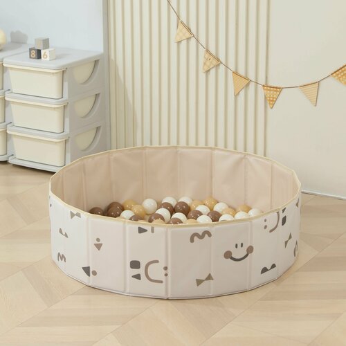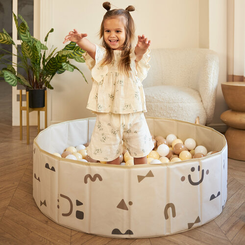 Детский сухой бассейн UNIX Kids Smile 100 Camel + 150 шариков 3 цвета, складной, сумочка в комплекте, высота бортиков 30 см, диаметр шарика 70 мм