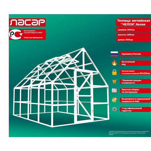 Теплица английская Челси 3х4м; Белая (RAL 9003)