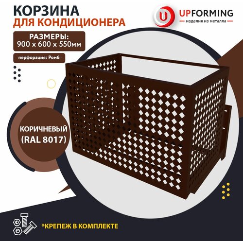 Корзина / короб для наружного блока кондиционера на фасад без кронштейна, 900х600х550мм коричневая (RAL 8017), перфорация -ромб-