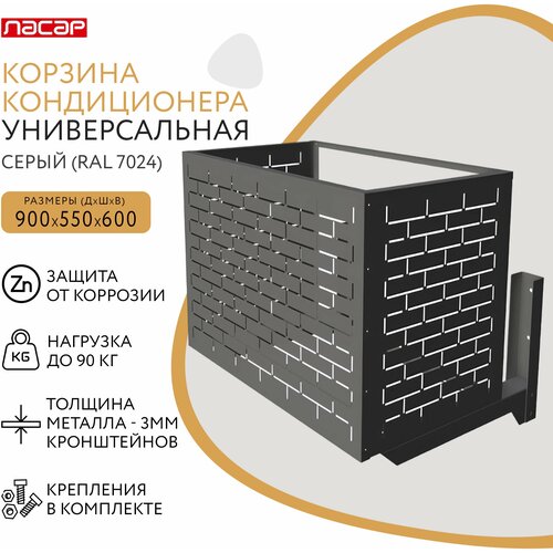 Корзина для кондиционера без кронштейна 900х600х550 серая (RAL 7024), перфорация -кирпичики-
