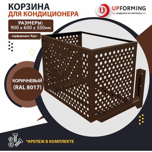 Корзина / короб для наружного блока кондиционера на фасад без кронштейна, 900х600х550мм коричневая (RAL 8017), перфорация -круги-