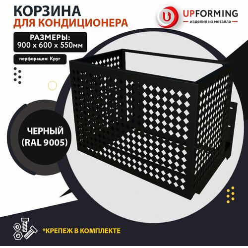 Корзина для кондиционера без кронштейна 900х600х550 черная (RAL 9005), перфорация -кирпичики-