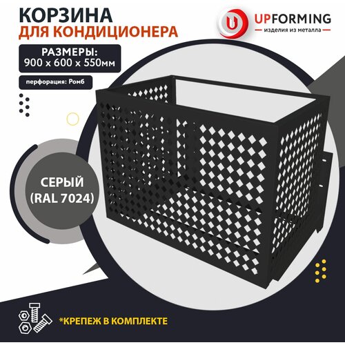 Корзина / короб для наружного блока кондиционера на фасад без кронштейна, 900х600х550мм (RAL 7024), перфорация -ромб-